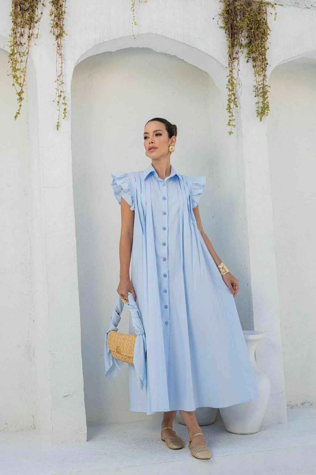 Confeccionada em tricoline, a chemise Thalia combina elegância e praticidade em um design versátil. Com mangas curtas e babados delicados, traz um toque romântico, enquanto as pregas e a saia rodada garantem fluidez e caimento impecável. Acompanha cinto no mesmo tecido, permitindo diferentes composições de uso, sempre com estilo.