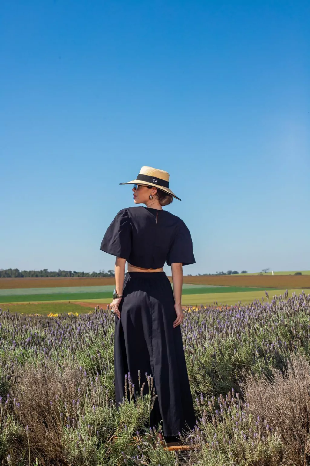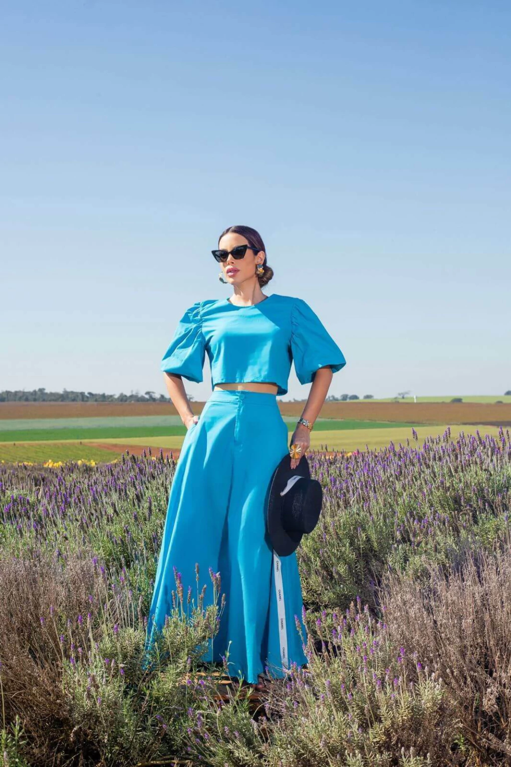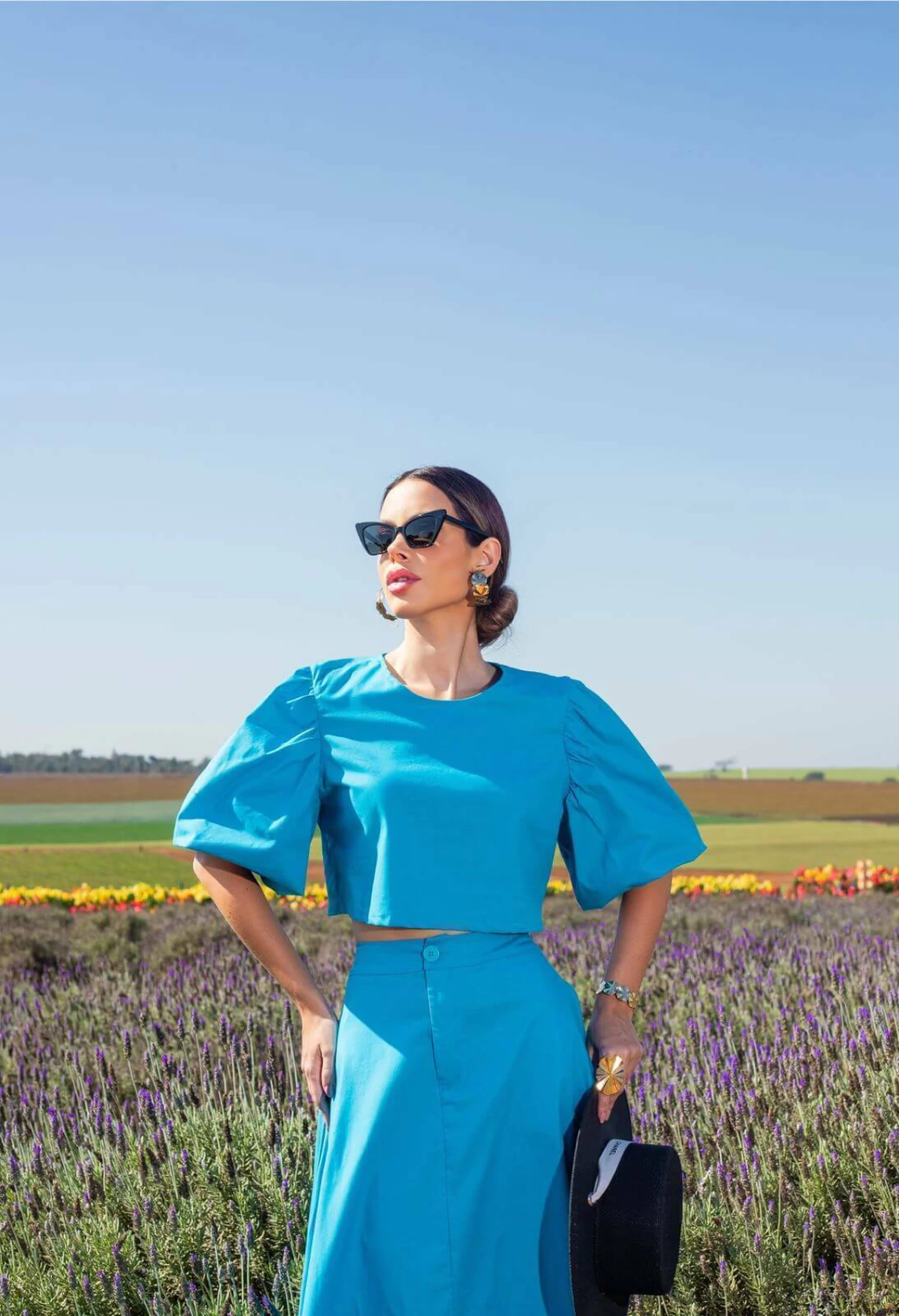 Conjunto composto por duas peças versáteis e atemporais, confeccionadas em tricoline - tecido estruturado, leve e confortável, ideal para composições elegantes com sofisticação natural. O cropped, de comprimento médio, possui mangas 3/4 bufantes que conferem volume e romantismo na medida certa. A saia, em comprimento longuete e modelagem rodada, apresenta cintura alta com bolsos faca funcionais.