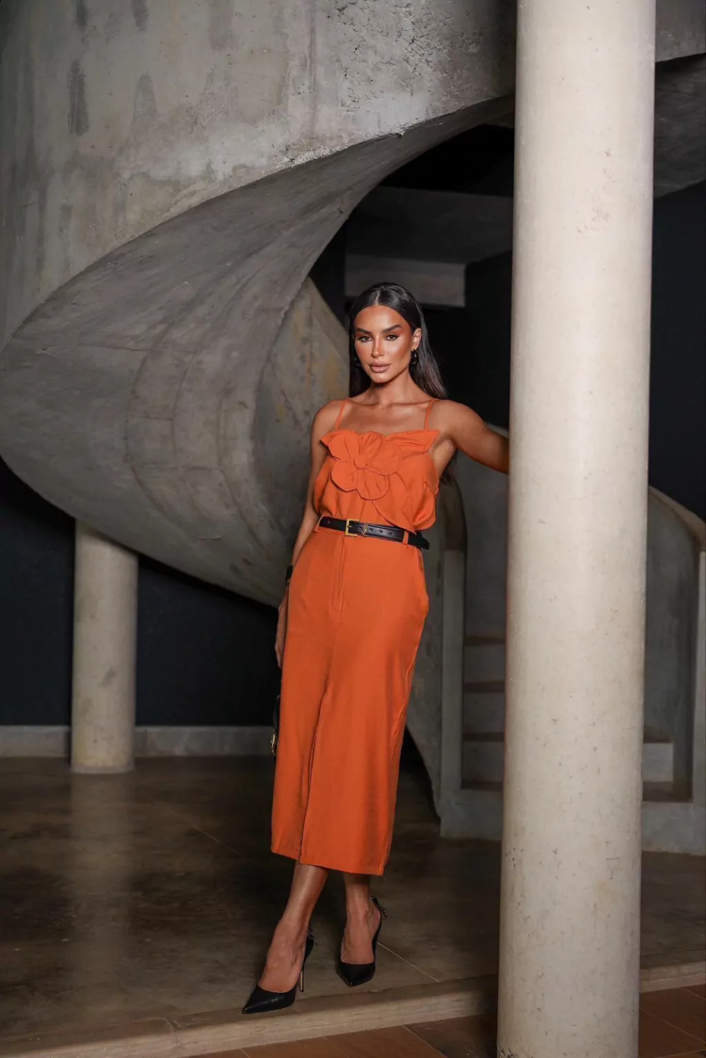 • Saia midi de cintura alta: silhueta alongada.