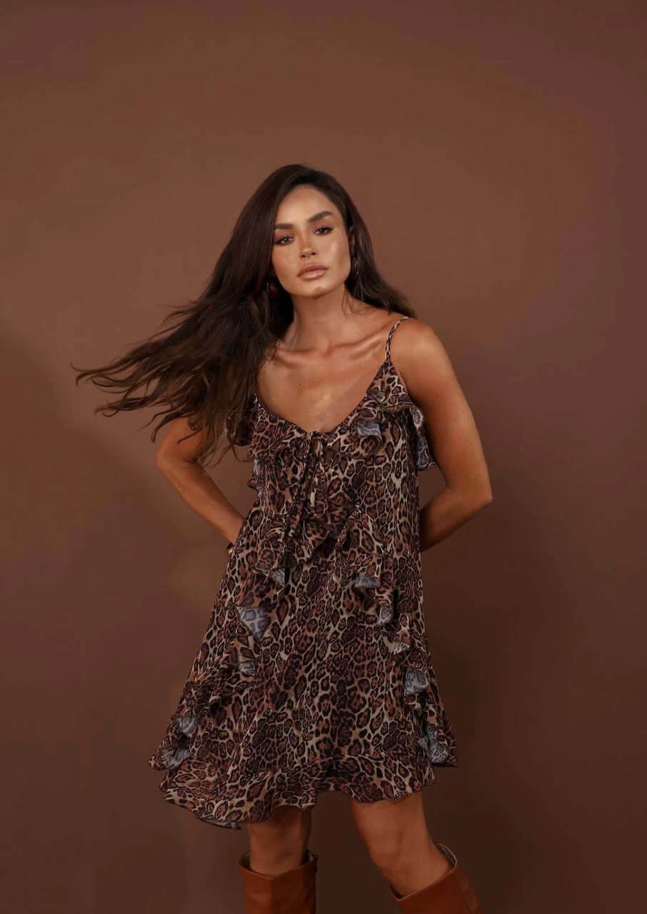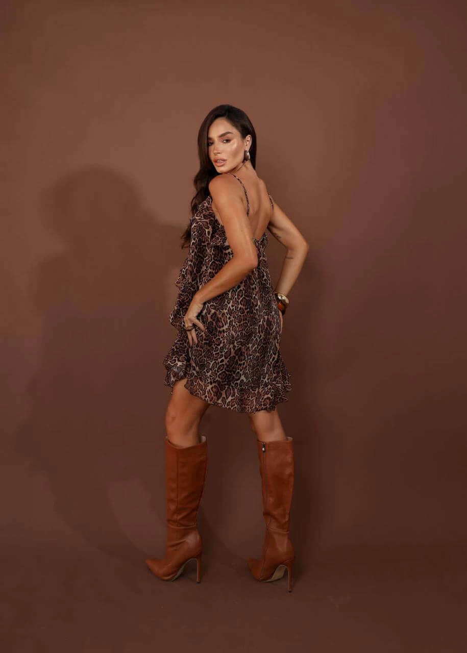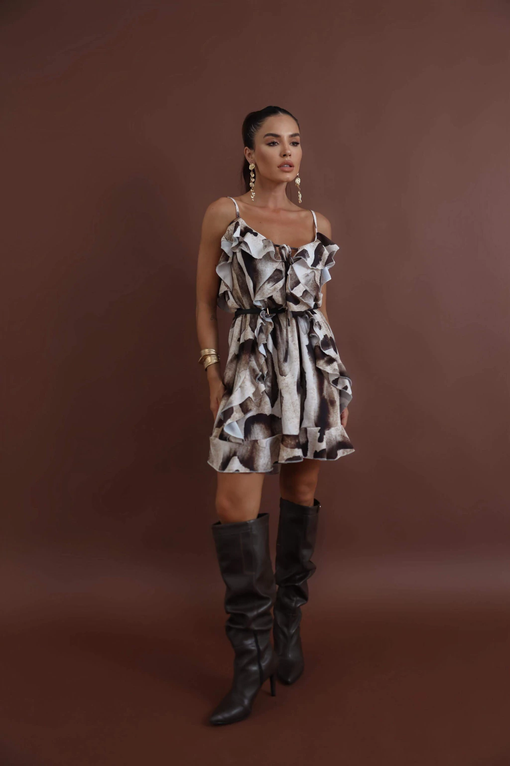 Confeccionado em chiffon - tecido plano, leve e elegante - este vestido traz um design atemporal com toque contemporâneo. As alças finas e reguláveis, combinadas ao elástico nas costas, garantem ajuste personalizado e confortável ao corpo. Os babados aplicados ao longo da peça conferem sofisticação e leveza ao visual. A saia solta proporciona movimento natural e torna o modelo ideal para ocasiões casuais refinadas, eventos diurnos ou jantares ao ar livre.